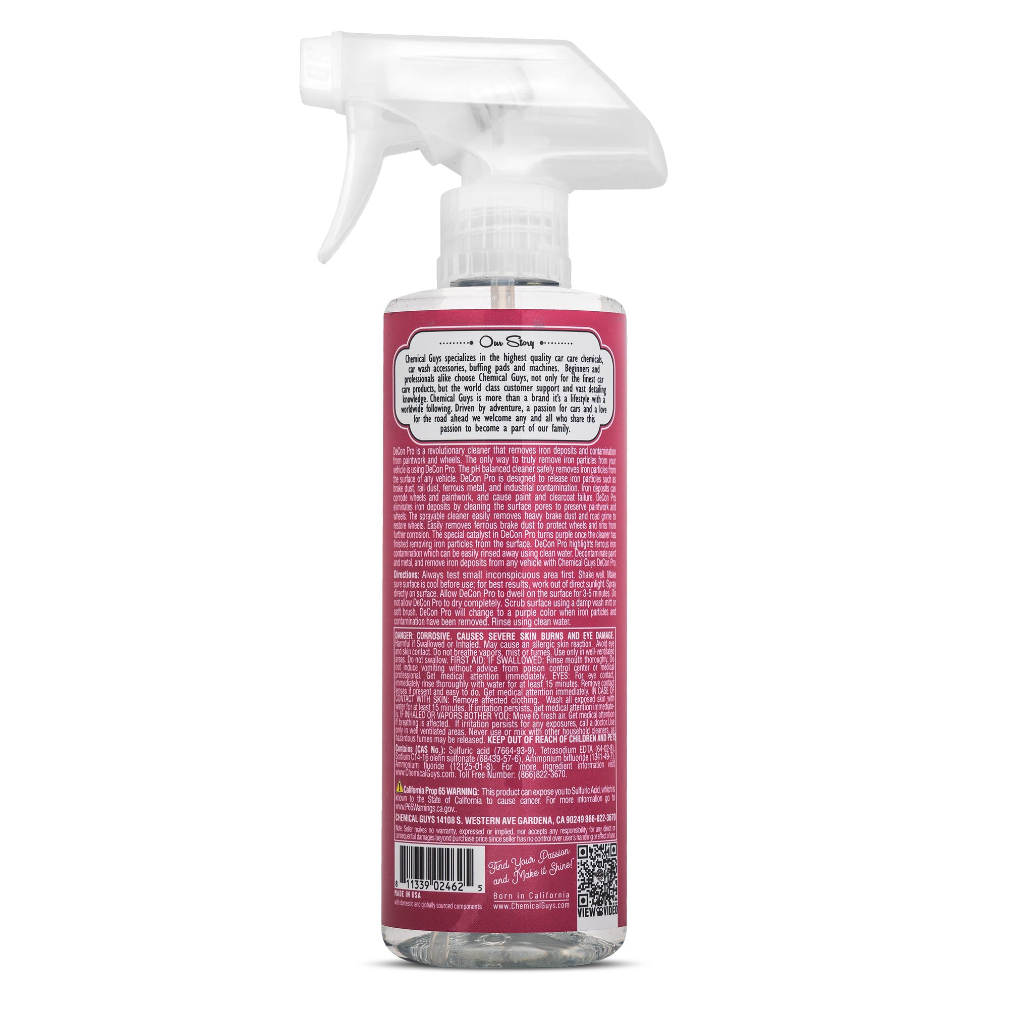 Unleash the power of Decon Pro Iron Remover. a heavy-duty color-changing cleaner that helps remove brake dust. iron deposits. and embedded metallic contamination.?