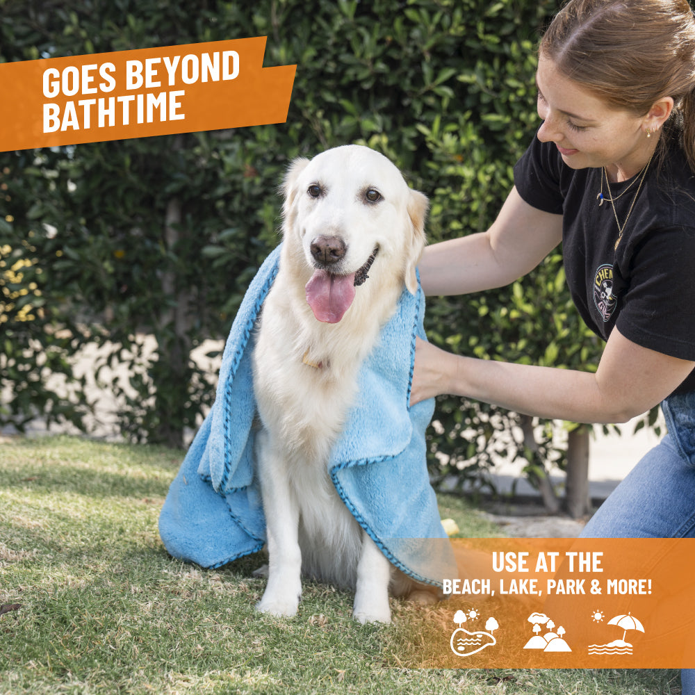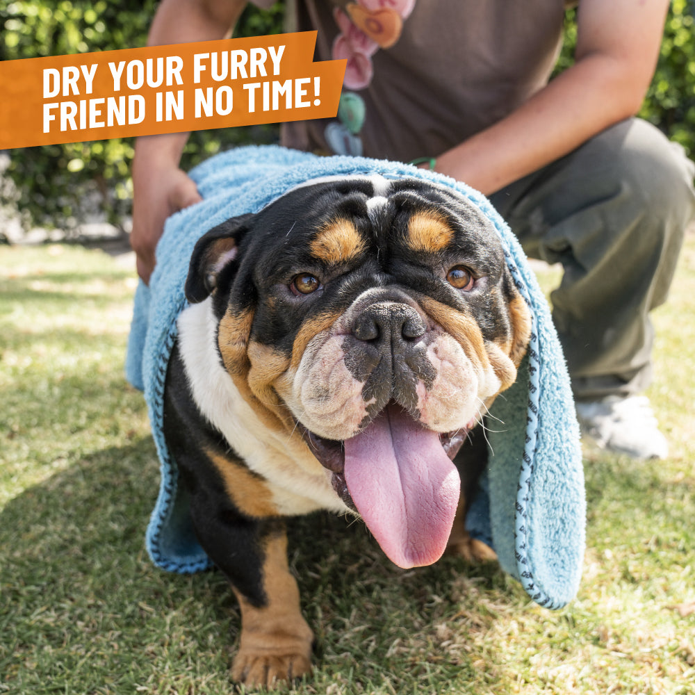 Furrocious is an ultra-plush. super absorbent microfiber pet drying towel that dries your four-legged friend in no time with its large 25 x 36 size that makes it easy to get every inch of them dry as a bone.