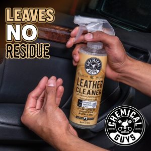 Leather Cleaner is a gentle cleanser that removes dirt. grease. body oils. sweat. food residue. and light stains from fine natural leather. durable sealed leather. and synthetic leather materials.