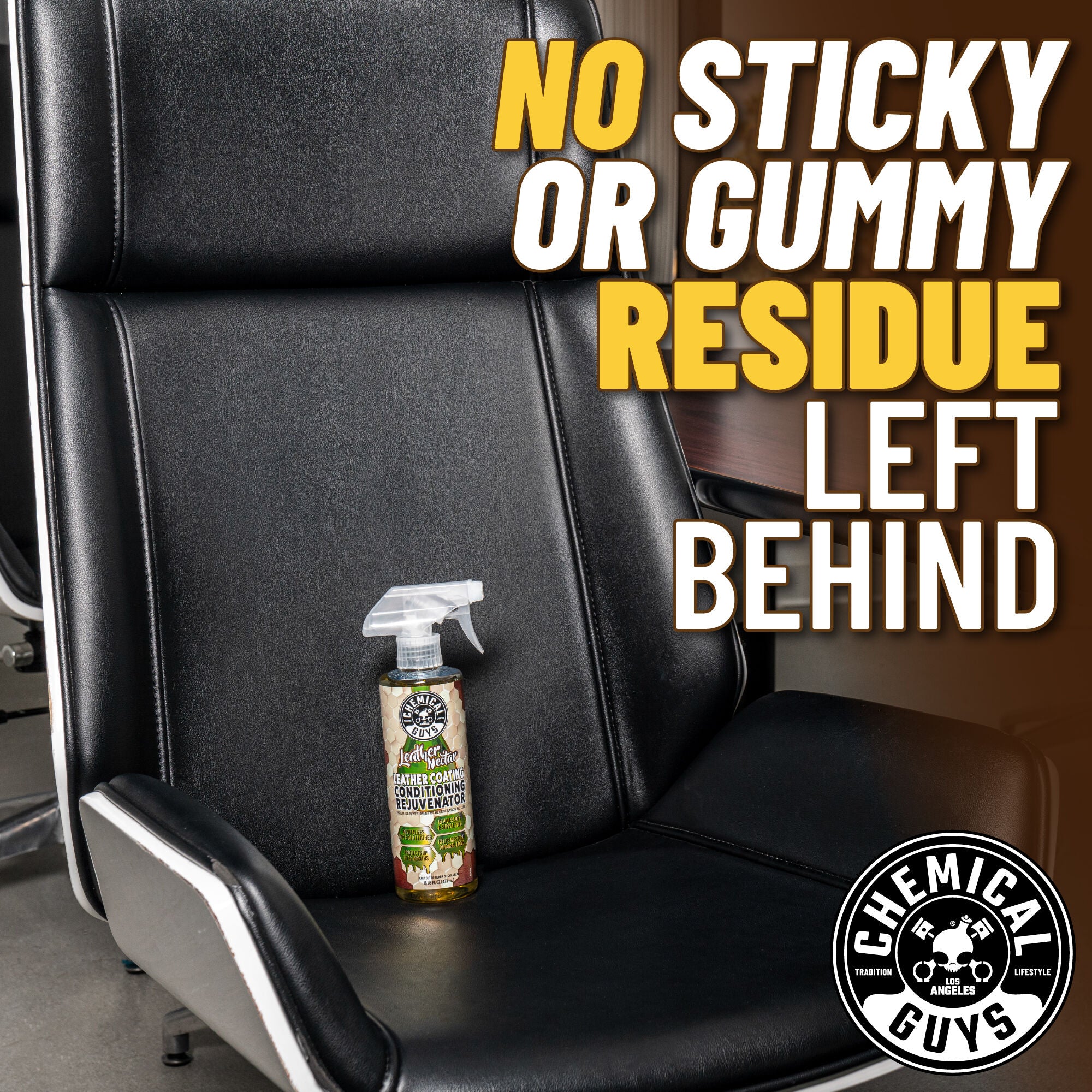 Chemical Guys Leather Nectar Leather Coating Conditioning Rejuvenator is a powerful leather restorer that penetrates deep into the pores of leather. moisturizing it to restore long lost softness. suppleness. and richness to help maintain and prolong the elegant look. feel. texture. and brilliance of leather.