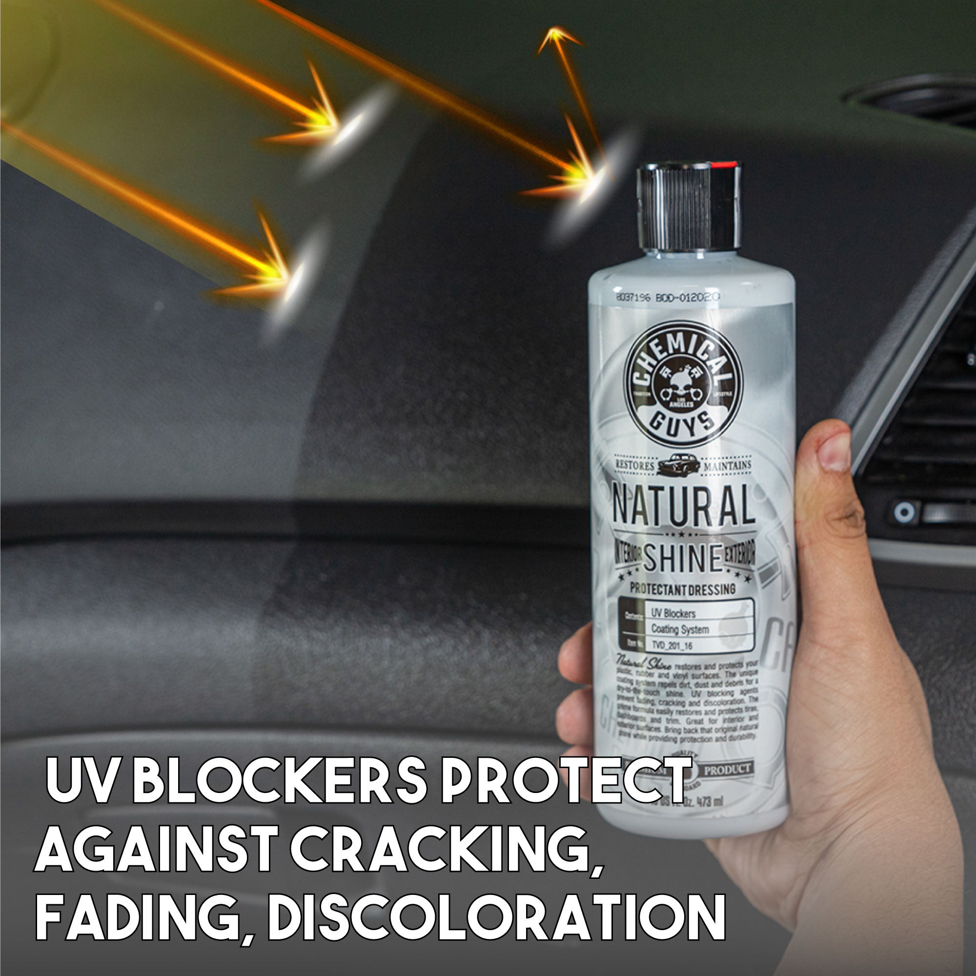 Natural Shine is a premium dressing that uses synthetic polymer coating technology to restore a classic. low-sheen. dry-to-the-touch shine to your plastic. rubber. and vinyl surfaces. Use both inside and outside your car.