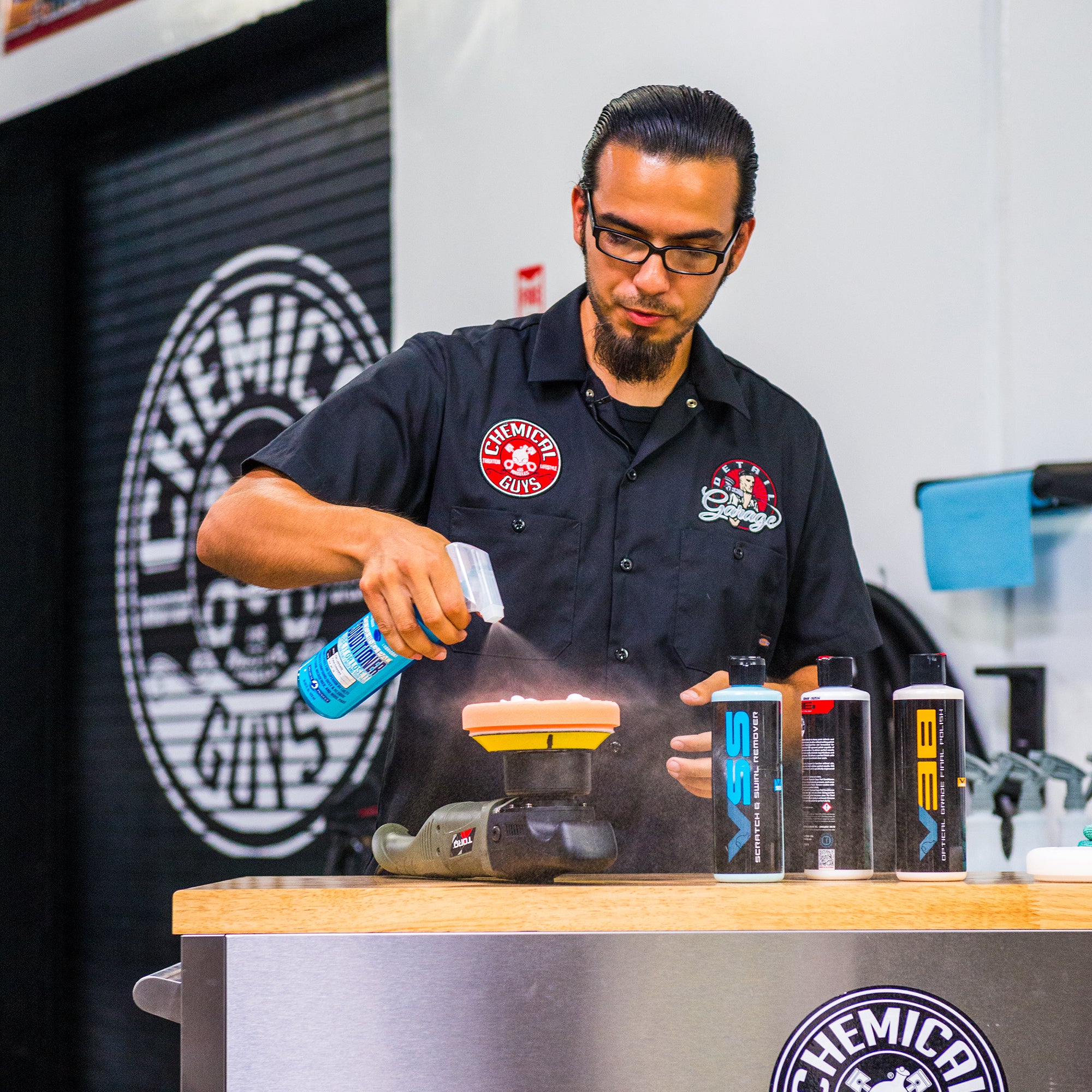 Chemical Guys Polishing Pad Conditioner lubricates buffing and polishing pads to reduce wear and tear. and produce superior polishing results. Dry rubbing builds up excess heat and friction. which reduces the effectiveness of polish abrasives and wears down buffing pads prematurely.