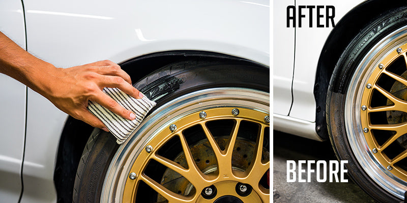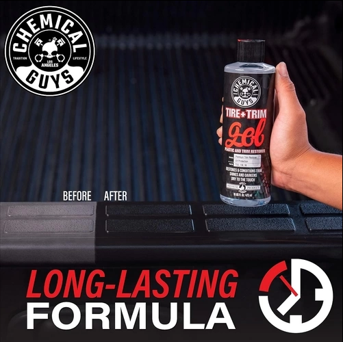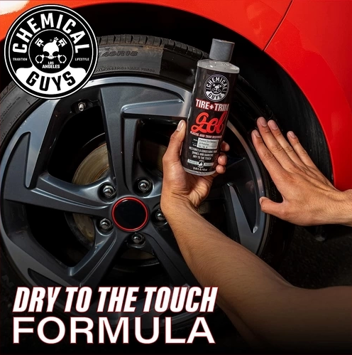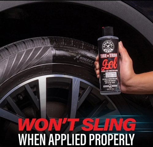 Tire + Trim restores faded trim and tires with a factory-fresh. wet-black shine while protecting against dirt. water. and harmful UV rays. Apply this gel formula with a foam applicator.
